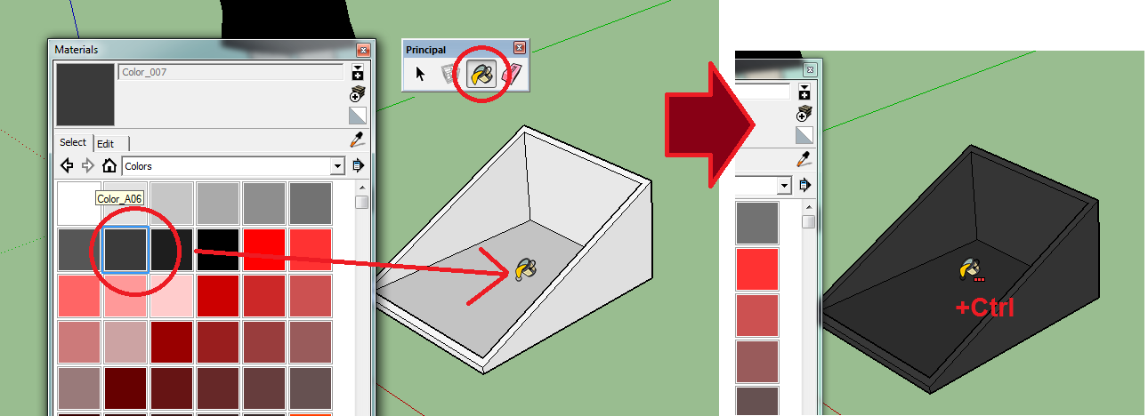 10. נפתח את דלי הצבע ונצבע את הפאות החיצוניות (לחיצה על אחת עם קונטרול כדי לצבוע את כולן).