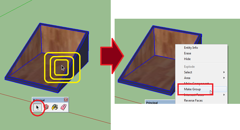 13. נבחר את כל הצורה עם טריפל קליק וניצור קבוצה עם Make Group.