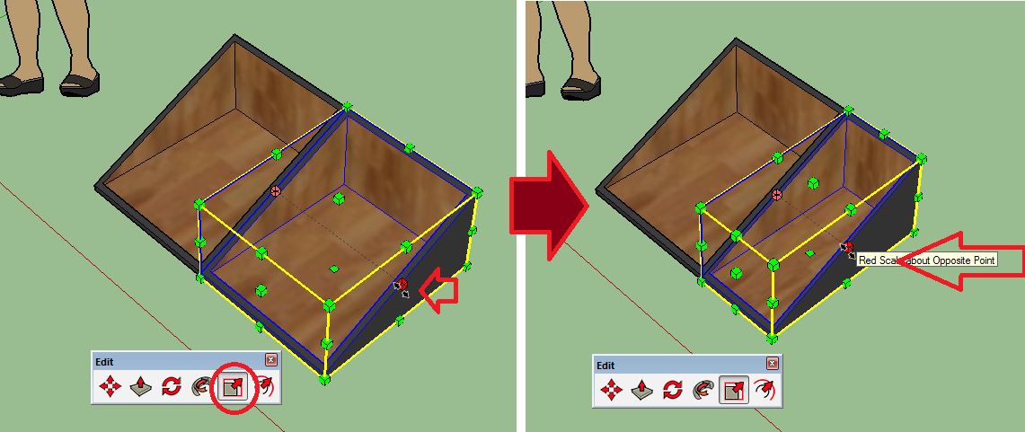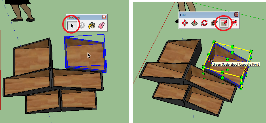 21. נהפוך את הקופסאות החדשות במראה עם Flip Along → Green Direction.