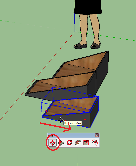 19. נבחר קופסה נפרדת ונזיז אותה עם Move לפי הציר (בדוגמא, לפי הירוק).