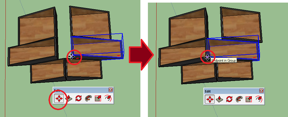 26. נוכל לסובב את כל הקבוצה יחד עם Move, תוך שימוש בנקודות הציון האדומות.