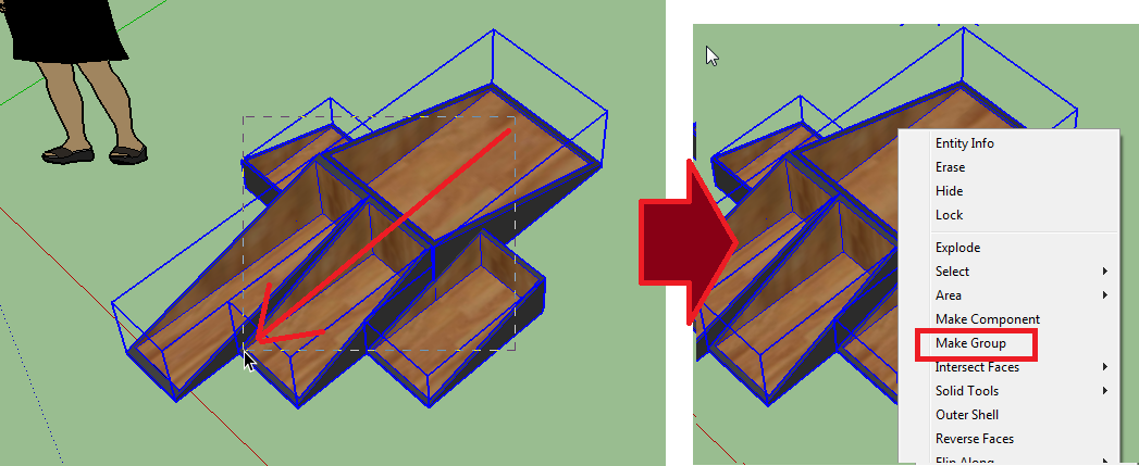 25. נבחר את כל האובייקטים וניצור קבוצה אחת בעזרת Make Group.