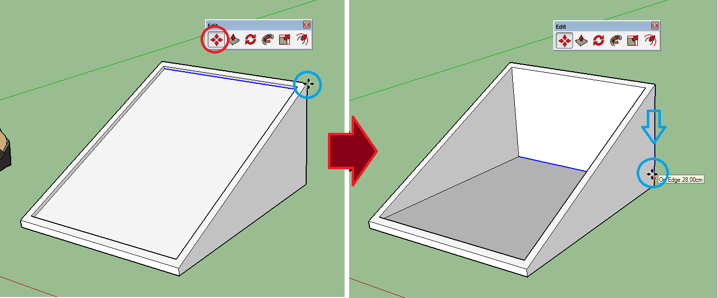 7. בעזרת Push and Pull ננמיך את המשטח הפנימי ב-1 ס”מ.