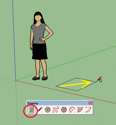 1. נבחר את הפקודה מלבן ונשרטט מלבן על הרצפה.