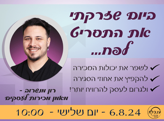 ההדרכה תתקיים דרך הזום ביום שלישי | בתאריך 6.8.2024 | תארך כשעתיים וכמובן תהיה מוקלטת!