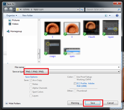 אם תשמרו אותה בפורמט של JPEG, השקוף יהפך ללבן.