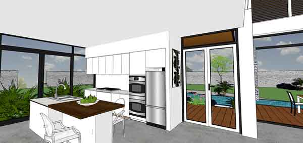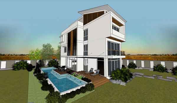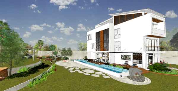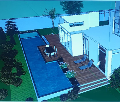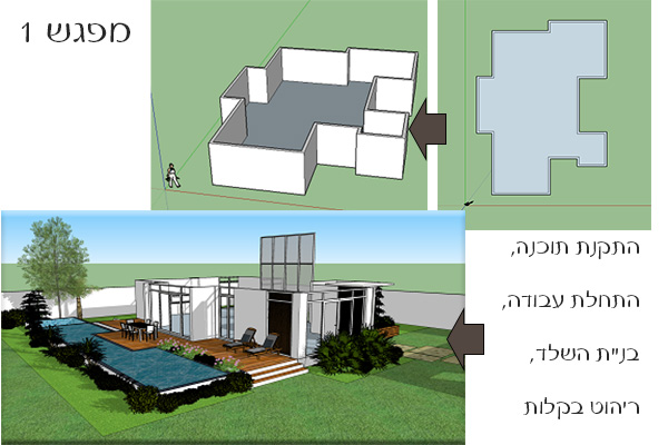 ניצור את קומת הכניסה, השלד, הפתחים- ונתחיל לפתח את הגינה עם צמחיה, גינה, דק ובריכה.