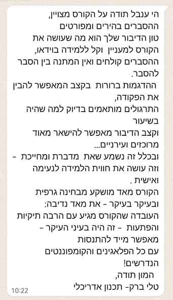 הקורס כל כך מוצלח שמאות כבר סיימו אותו בהצלחה,