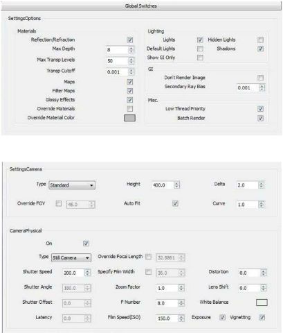 אלו הגדרות עבור רינדורי פנים שלקוחות מהגדרות ברירת המחדל של התוכנה עם שינויים קלים.