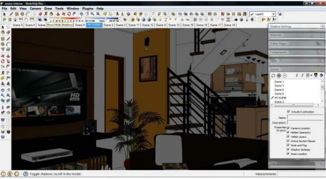לאחר שאנו מרוצים מהגדרות הצללים, ניגש למצלמה ונגדיר סצינה שאותה נרצה לרנדר.